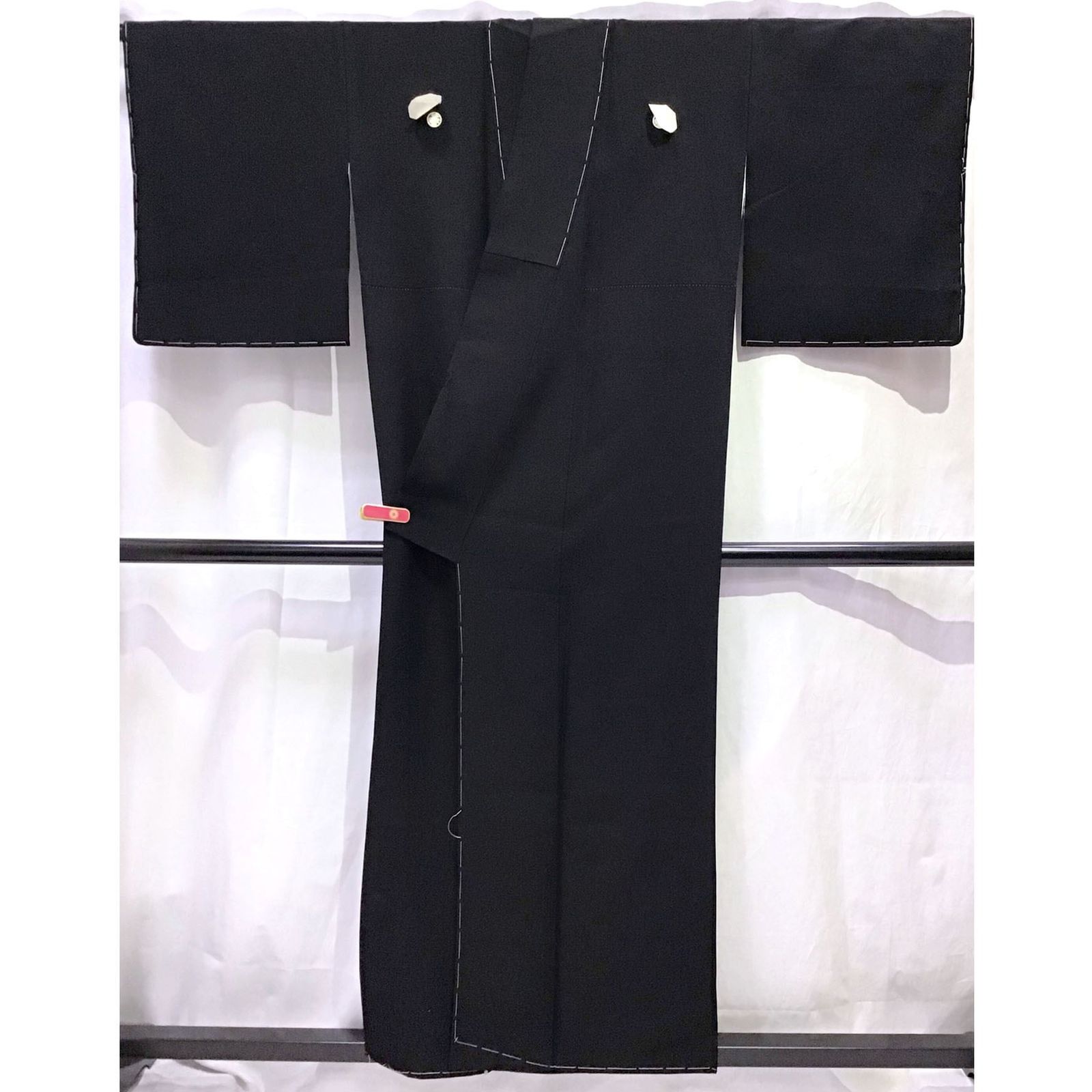 身丈:約154cm、袖丈:約48cm、裄丈:約63cm、後幅:約29.5cm、前幅:約24cm、状態ランク:A 袖、裾しつけ付、目立つヨゴレなし