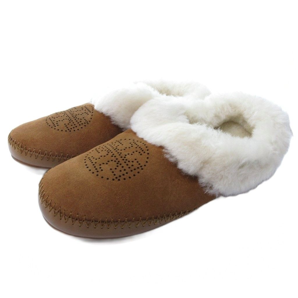 【商品名】トリーバーチ TORY BURCH ムートンシューズ シアリングスリッパ スリッポン サンダル ロゴ 茶 ブラウン 約24cm IBO81 1022