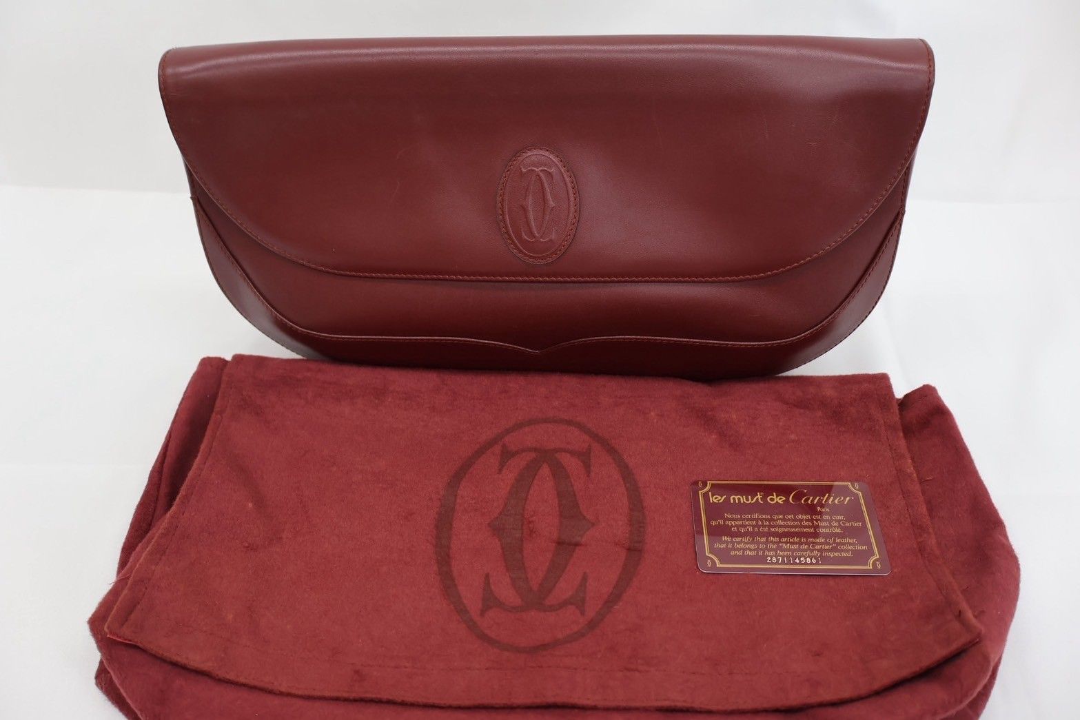 CARTIER セカンドクラッチバッグ マストライン FT 119 ボルドー ゴールド金具 カーフレザー