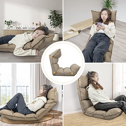 WAVV 座椅子 低反発リクライニングソファー 頭・背・脚独立可動3点14段階 肉厚クッション ハイバック 撥水加工 フロアチェア (コーヒー)