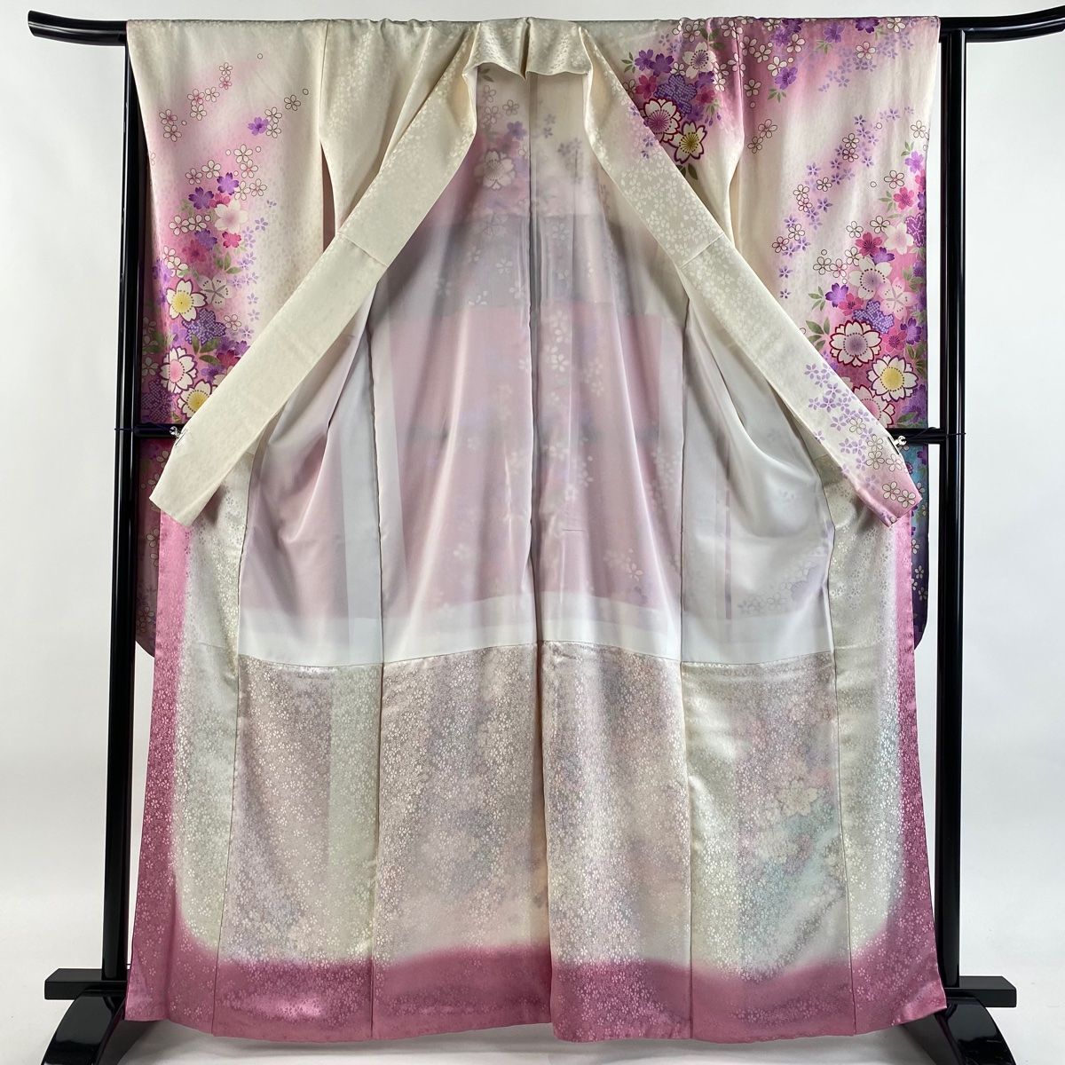 振袖 身丈166 cm 裄丈63.5 S 袷 袋帯フルセット 桜 金彩 染め分け クリーム 正絹 秀品