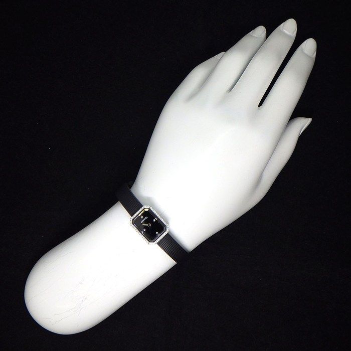 シャネル CHANEL 腕時計 プルミエール H 2434 ダイヤベゼル 4ポイント ダイヤインデックス オクタゴナル ブラック文字盤 ラバー ベルト SS クオーツアナログ