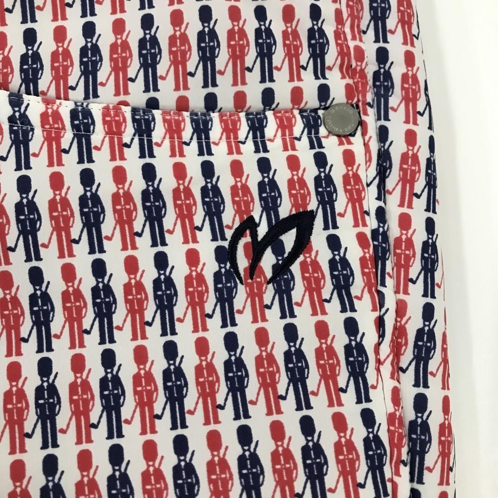 マスターバニー 中綿ナイロンパンツ 白×レッド×ネイビー 兵隊柄 蓄熱裏地 メンズ 4 M ゴルフウェア MASTER BUNNY EDITION