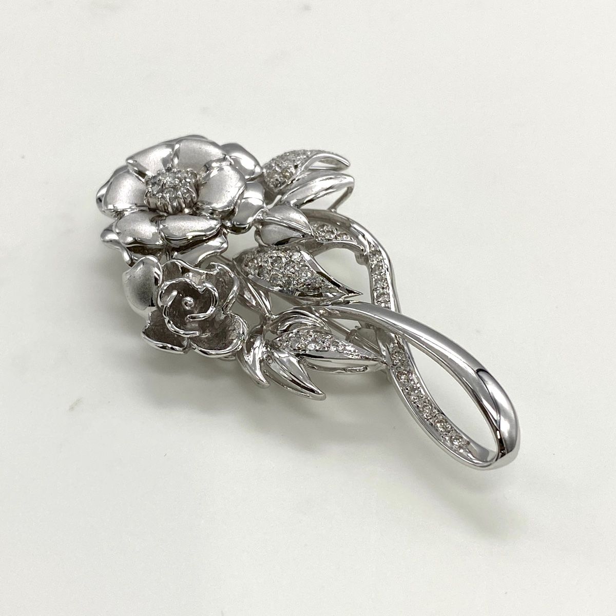 フラワーモチーフ デザインブローチ WG ホワイトゴールド メレダイヤ 花 ダイヤモンド ブローチ K 18 14 レディース