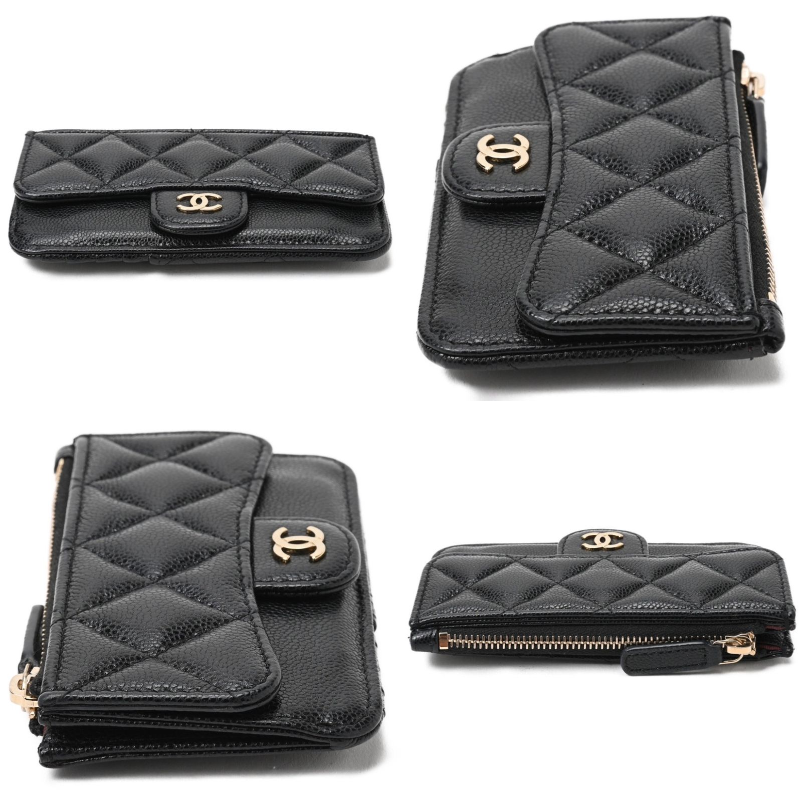 シャネル CHANEL マトラッセ コイン カードホルダー カードケース AP 2570 キャビアスキン ブラック ゴールド金具 S-156909