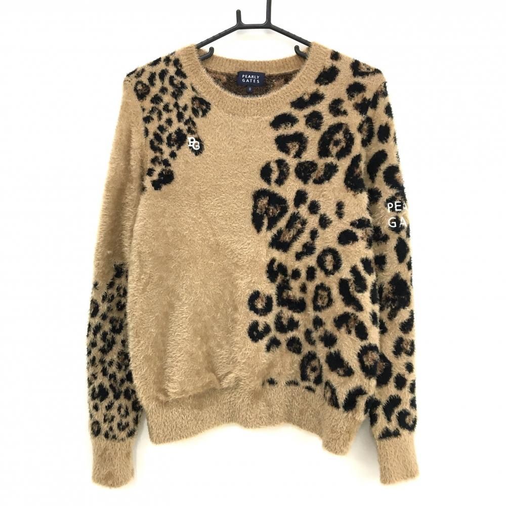 超 パーリーゲイツ セーター ブラウン×黒 レオパード ニット レディース 0 S ゴルフウェア PEARLY GATES