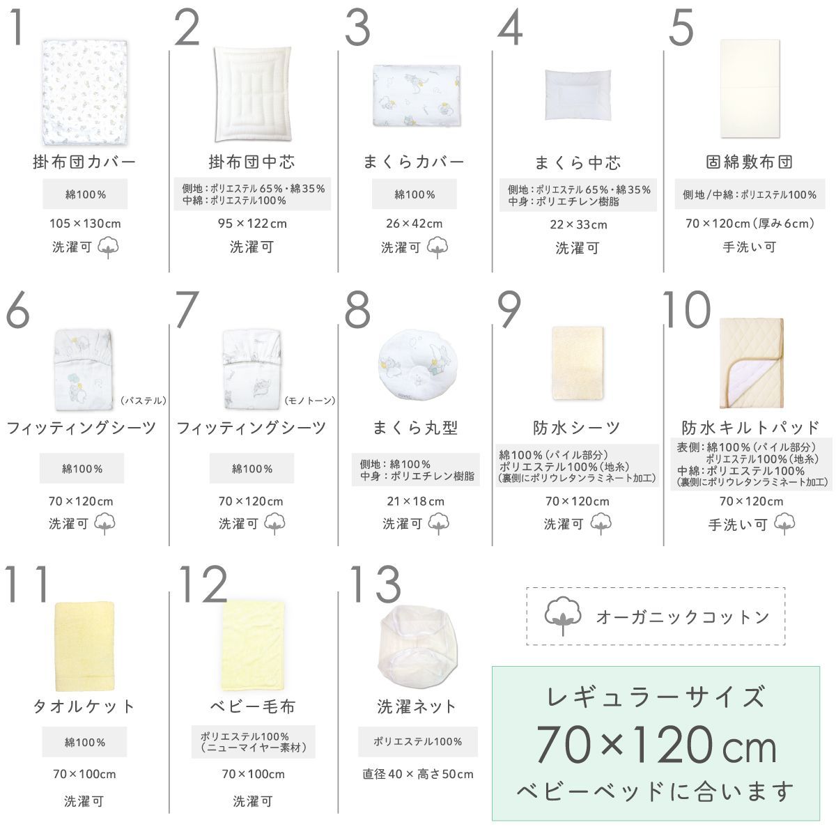 レギュラーサイズ※内寸法70×120cmのベビーベッド対応