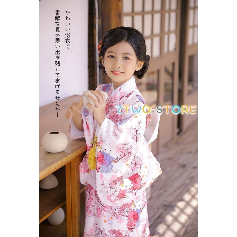 浴衣 子供浴衣 ゆかた yukata ウサギ ウサギ柄 子供 女の子 キッズ 子ども こども ピンク ホワイト 花柄 上品 おしゃれ きれい 洗えDL 09 LYX