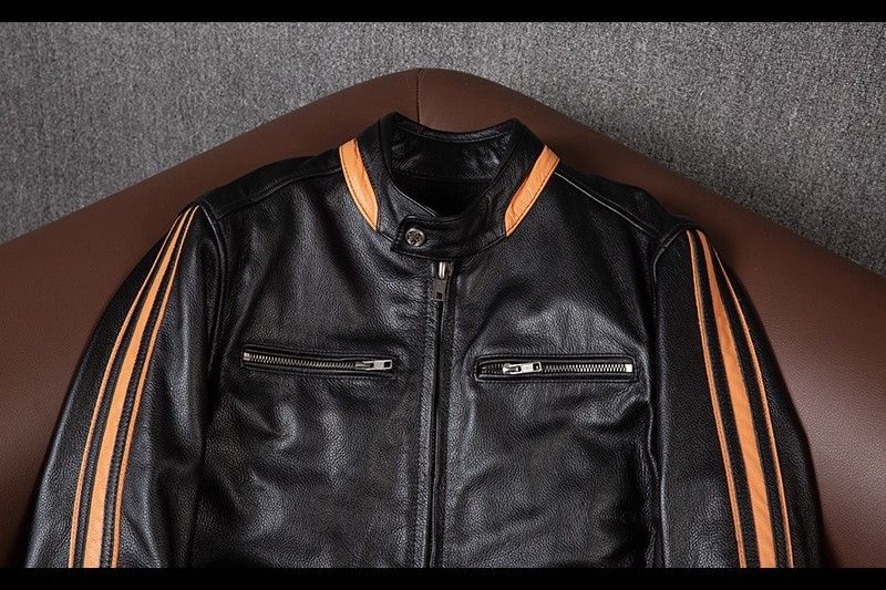 こちらは、純頭層牛革を使用した高品質なメンズレザージャケットです。モーターサイクルやツーリングに適した設計で、プロテクター(護具)を後付けできる仕様となっており、安全性と機能性を兼ね備えています。普段のファッションとしても、ライディングウェアとしても活躍する万能モデルです。