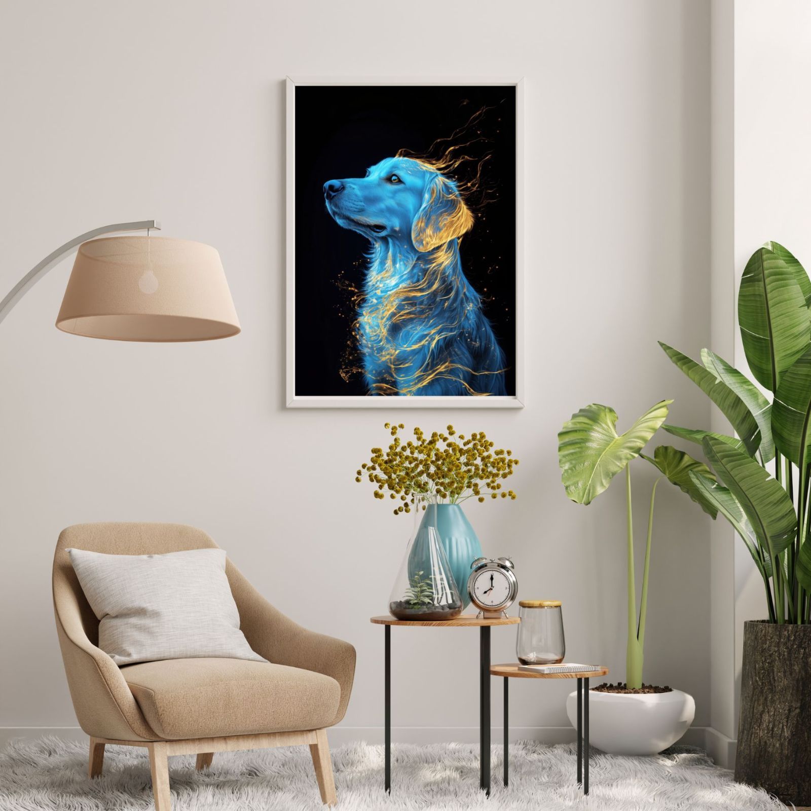 美しくかわいいワンちゃん達のアートポスターを玄関やリビング、ダイニングや寝室に一枚飾るだけで、幸せな空間が一気に広がります。