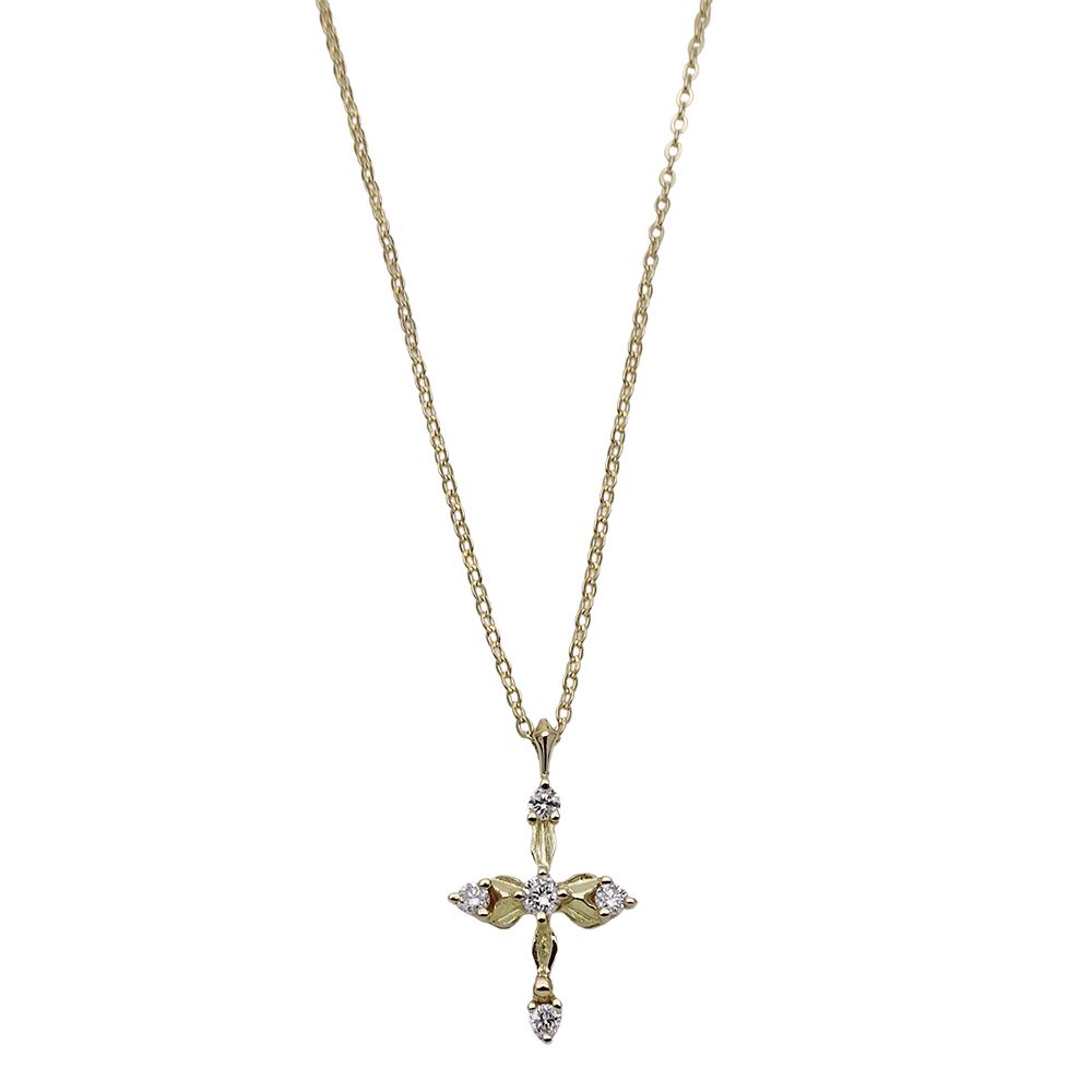 商品名:アーカー AHKAH ネックレス レディース ブランド K18 5P ダイヤモンド D0.05 クロス 十字架 イエローゴールド ジュエリー 磨き済み 【新品】