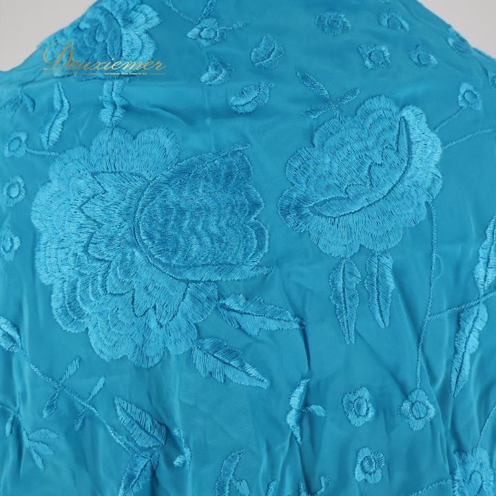 フラメンコ 衣装 マントン シージョ フレコ 刺繍 水色 青 装飾 小物 ダンス パーティ 飾り 発表会 レッスン ブルー系 ターコイズブルー フレコ長い 輝く色合い 舞台衣装 おしゃれ コスチューム パフォーマンス ダンス小物