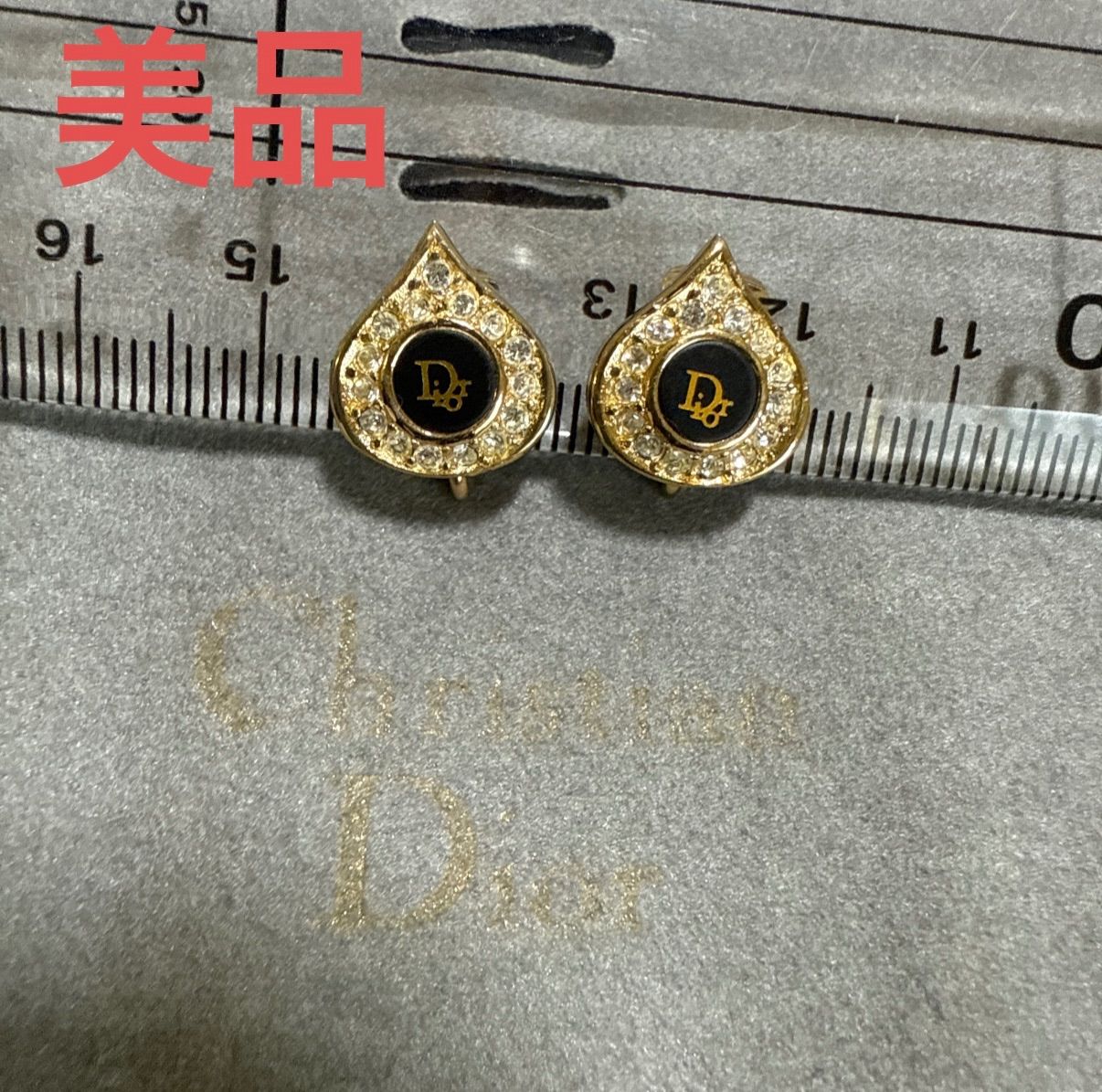 Christian Dior クリスチャンディオール ラインストーン付きティアドロップモチーフイヤリング ゴールド ブラック