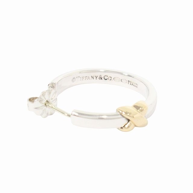 仕上げ済 新同 ティファニー TIFFANY - CO. SV 925 K 18 YG コンビ シグネチャー クロス フープ ピアス ジュエリー シルバー イエローゴールド メンズ レディース ユニセックス 9