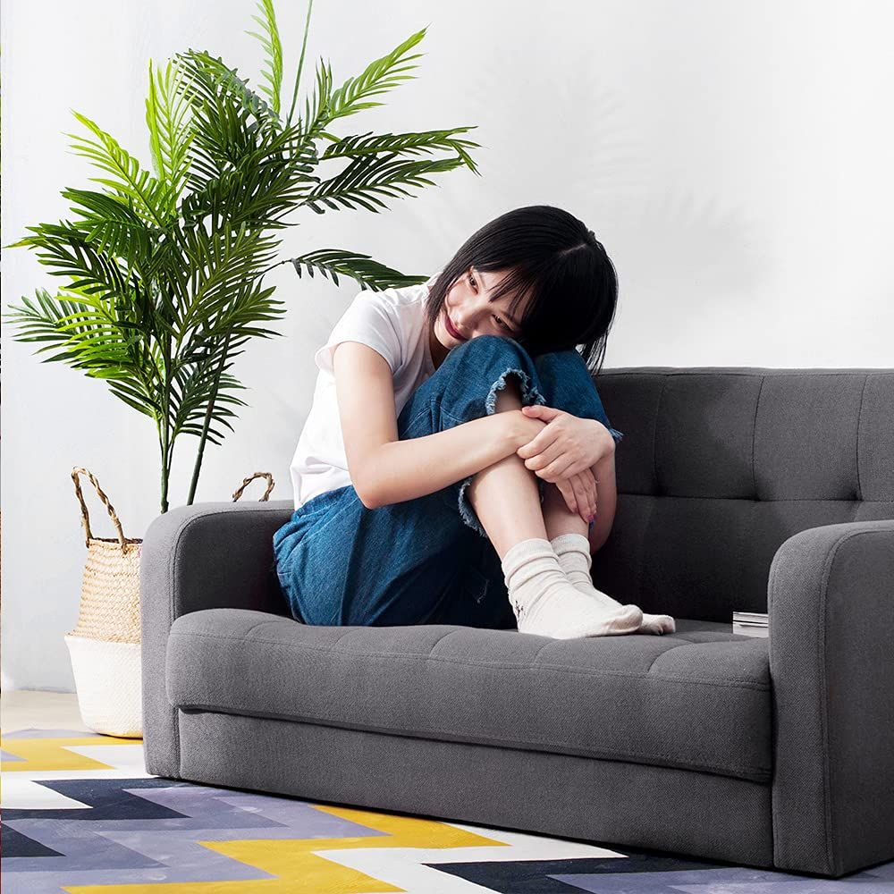 オーエスジェイ(OSJ) ソファー 2人掛け 肘付き 天然木脚 幅約110cm 簡単組み立て 2WAY ファブリック おしゃれ 新生活 北欧スタイル ソファベッド グレー 62*113*38