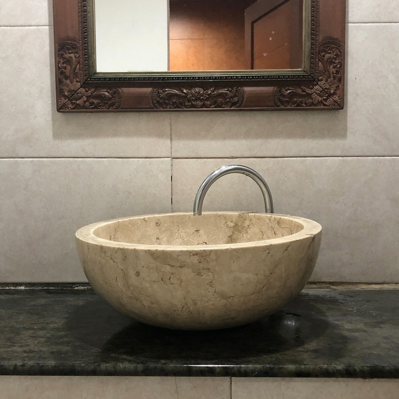 天然の大理石を削って作った洗面ボウルです。内側、外側も研磨されていてスベスベなので汚れも付きにくくなっています。