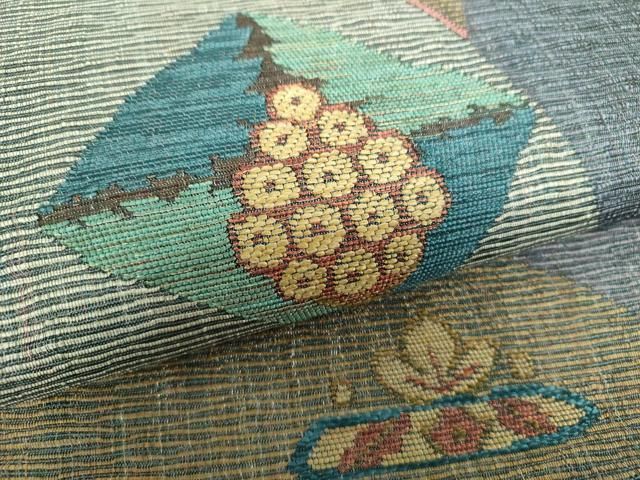 平和屋着物 西陣 じゅらく謹製 六通柄袋帯 コプト花鳥文 金糸 正絹 ps