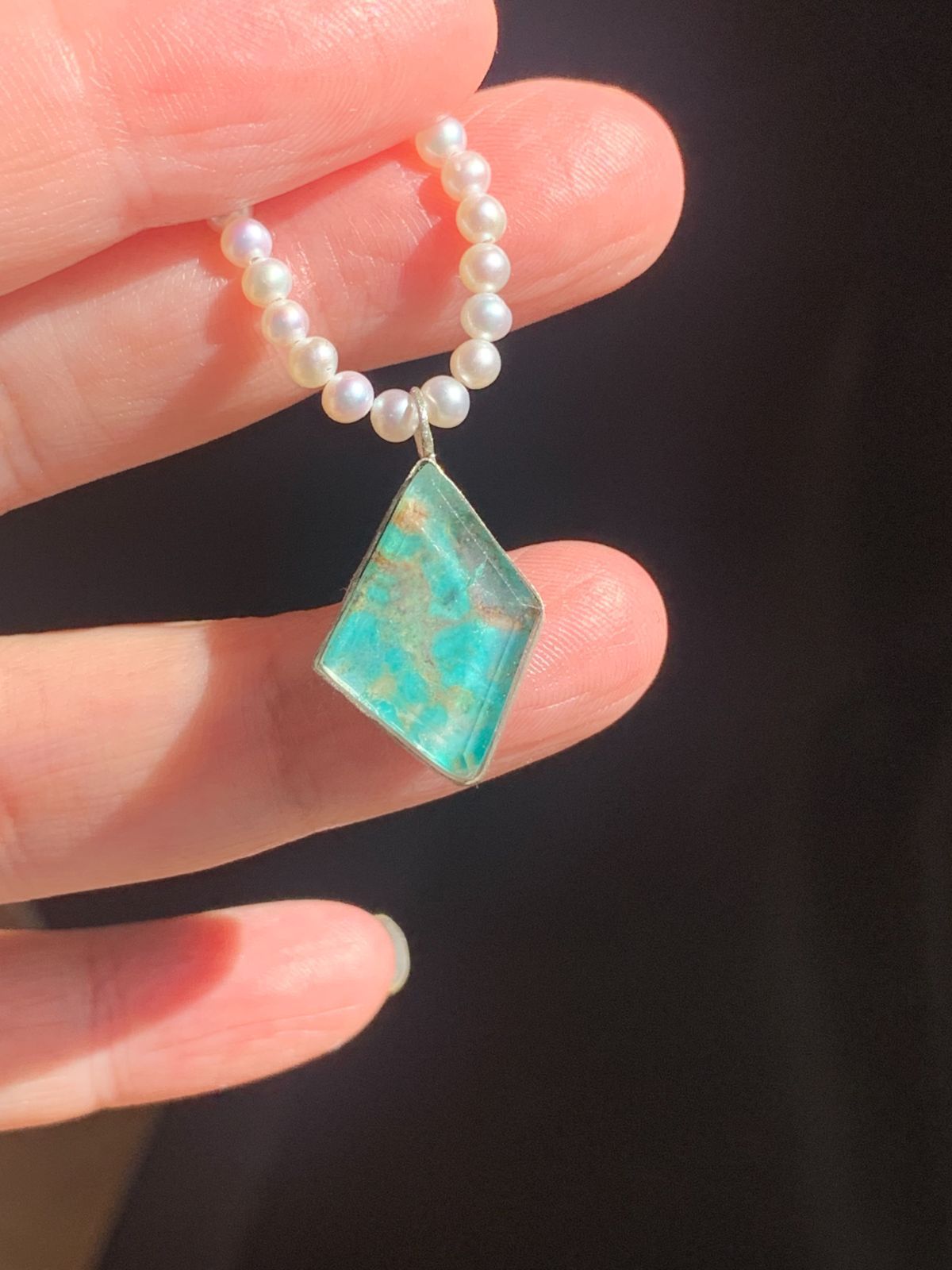 ターコイズ×ルチルクォーツ×クリスタルクォーツ ダブレット ストーン ネックレス 両面ペンダント チャーム SV 925シルバー 1点もの 38
