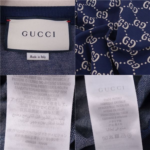 美品 グッチ GUCCI ジャケット ブルゾン ジップアップ ジャージー GG柄 アウター メンズ イタリア製 S ネイビー
