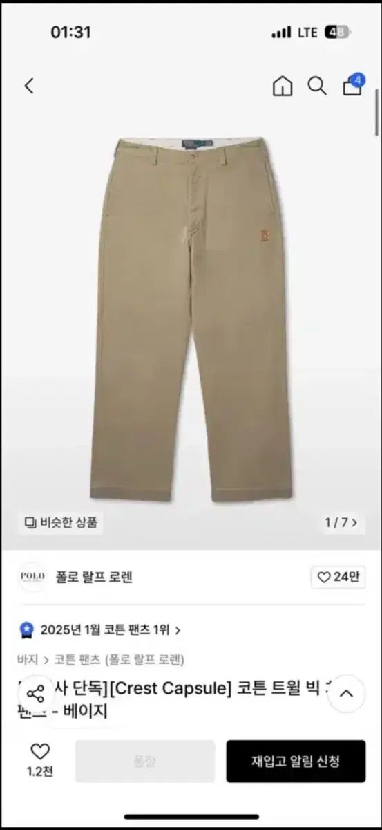 ポロラルフローレン コットンツイル ビッグチノパンツです。ベージュカラーなので、どんな服にもよく合います。右太もも部分にポロロゴが刻まれています。別途お問い合わせなければ、そのまま安全決済をお願いします!