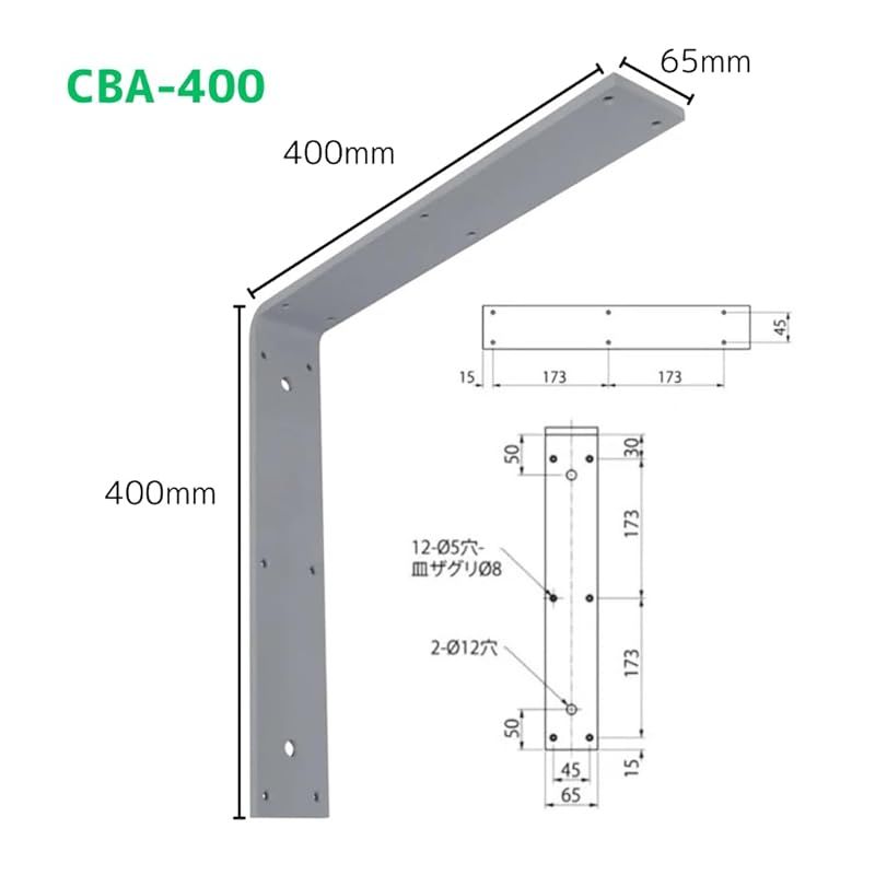 商品名:【新品】 タテカナ 棚受け金具 カウンター 受け金具 補強金物 L型 アングル 鉄フラットバー 厚み 9mm 寸法65mm 巾400×400mm CBA-400 グレー錆止め 日本製