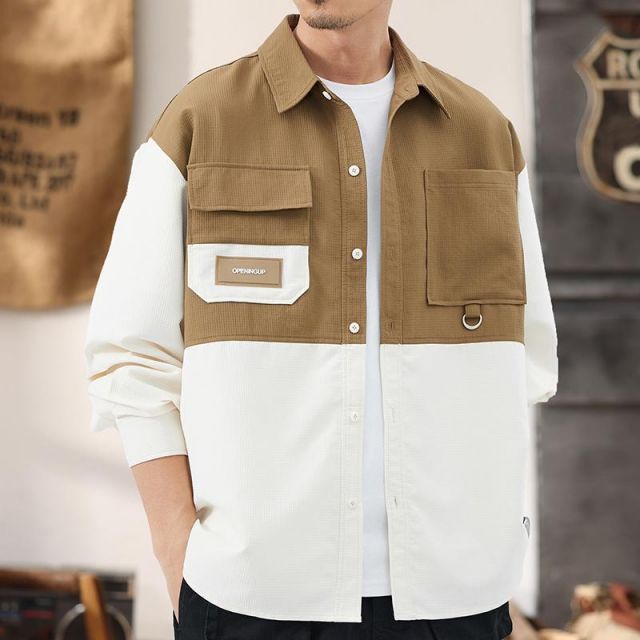 秋冬 コーデ メンズ 服 シンプル ファッション オシャレ 大人 かっこいい 大きいサイズ ストリート 紳士服 アメリカン レトロ ブロック ワーク ジャケット シャツ カジュアル