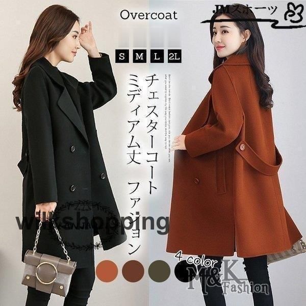 コート レディース チェスターコート ロング ラシャ混コート アウター 秋 冬 ウール混コート 無地 ベーシック ゆる 体型カバー ロ