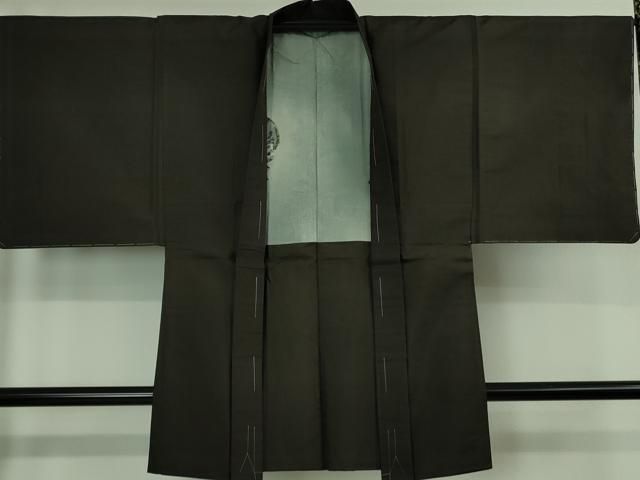 平和屋着物 上 男性 長羽織 紬地 色無地 黒紅色 羽裏 達磨 ♥ kh 5