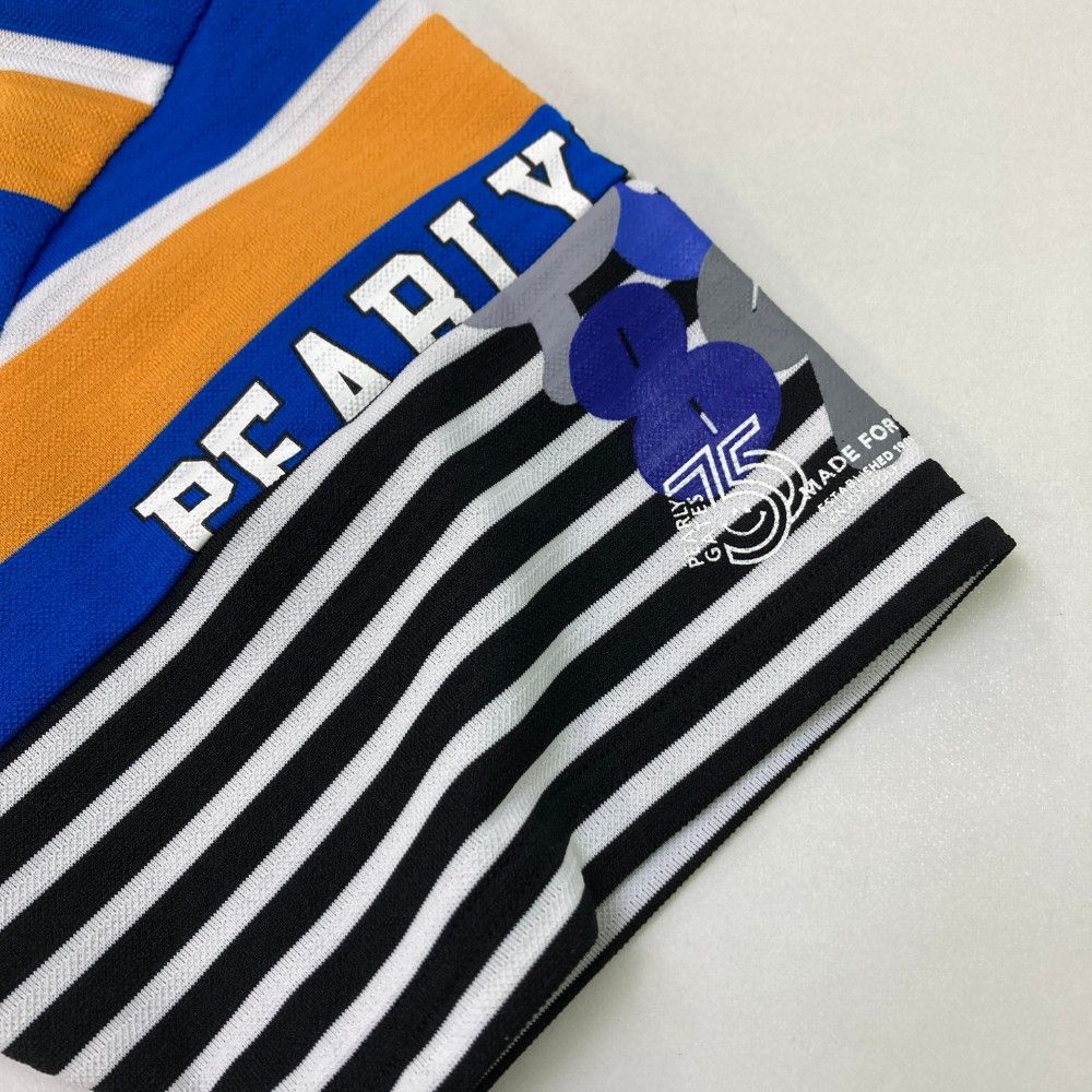 サイズ 4 PEARLY GATES パーリーゲイツ モデル 切替 ハイネック 半袖Tシャツ ボーダー柄 オレンジ系 ゴルフウェア メンズ ストスト