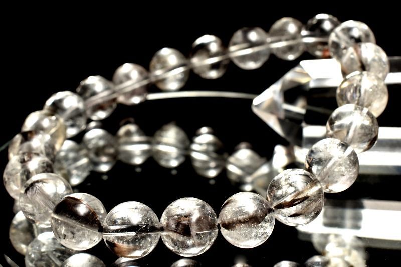 1点物 ブルッカイト入り プラチナタイチンルチルクォーツ 9 mm ブレスレット パワーストーン 天然石 _MA 8437