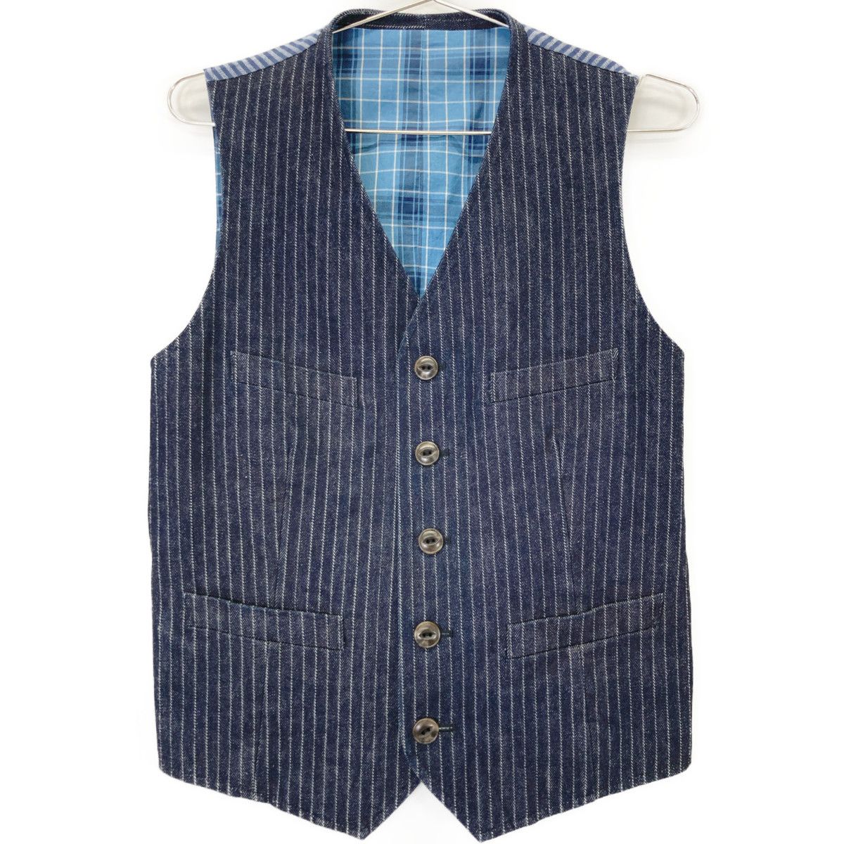 The Stylist Japan ザスタイリストジャパン ネイビー ストライプ カイハラデニム 銀釦3 Pスーツ XS