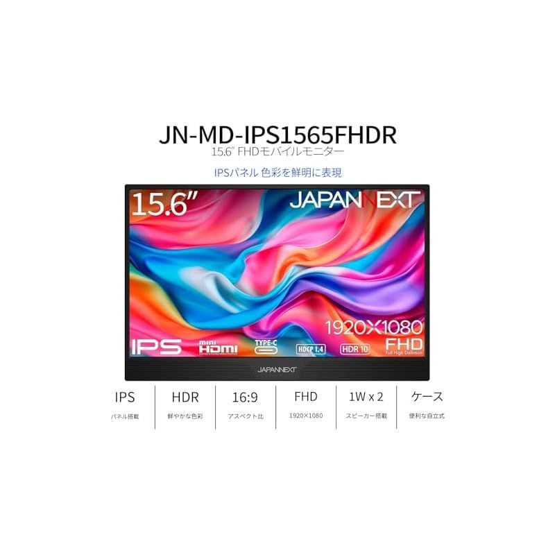 商品名:JAPANNEXT 15.6インチ モバイルモニター IPS パネル フルHD 1920x1080解像度 スマートケース付き (Type C/MAC PC対応/スピーカー内蔵 / sRGB100% / 非光沢) JN-MD-IPS1565FHDR