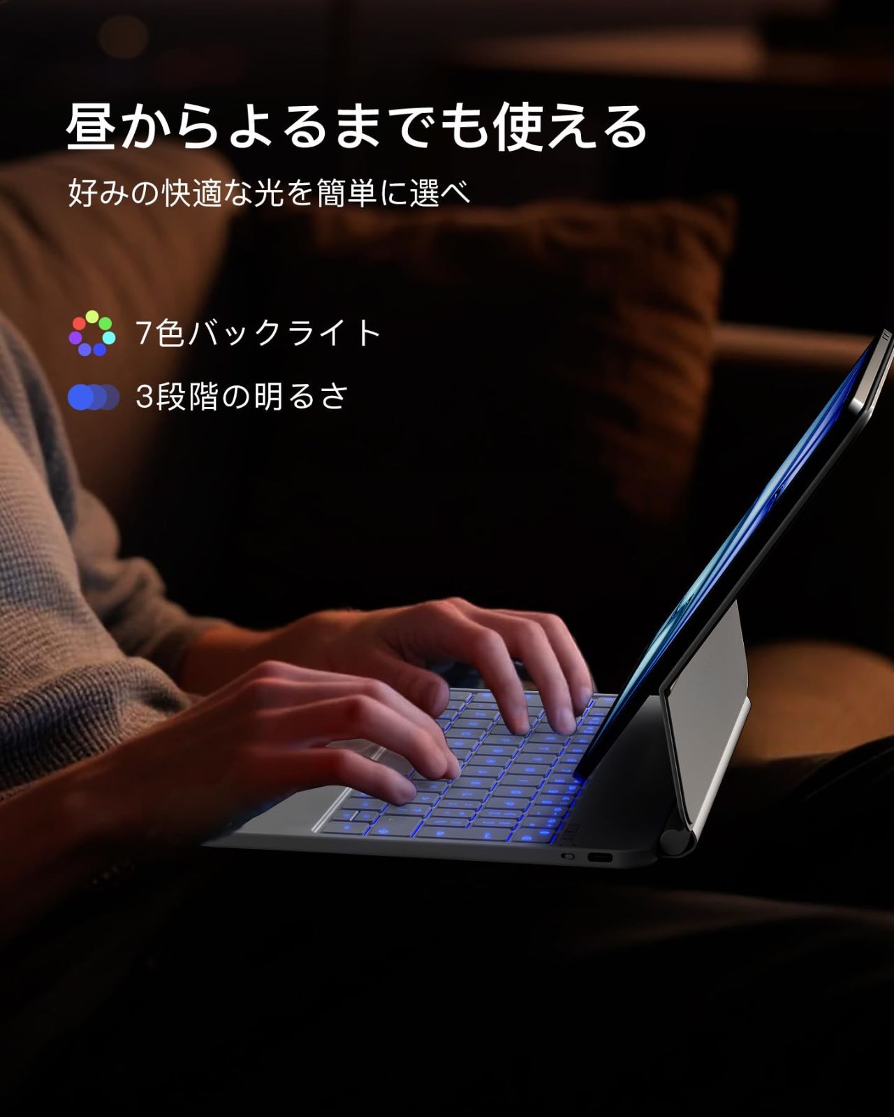 Inateck マジックキーボード JIS日本語配列 iPad 2024 Air 6 M2 2024/M3 2025 11インチ対応 iPad Air 第6/5/4世代 キーボード付きケース iPad Pro 11 第4/3/2/1世代対応 トラックパッド搭載 7色バックライト 磁気吸着 ブラック KB09119 ホワイト