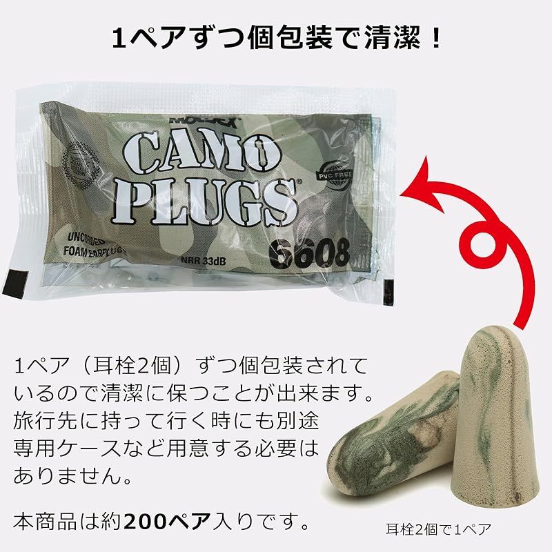 MOLDEX モルデックス カモプラグ 約200ペア 6608 耳栓 遮音 睡眠用 いびき 安眠グッズ