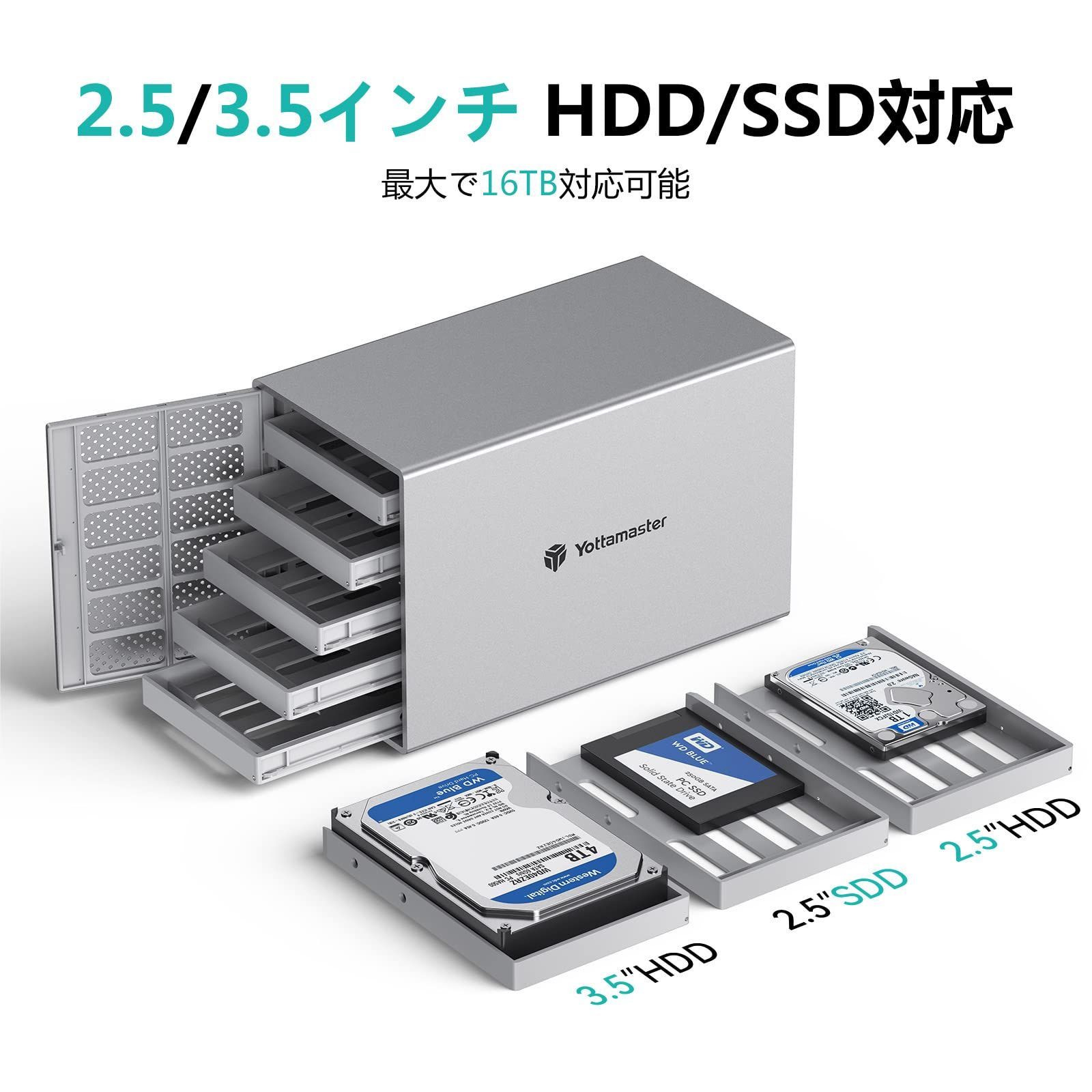 数量 HDDケース 3.5インチ 5 Bay USB 3.0 Type-B接続 SATAⅢ 外付けハードディスクケース RAIDケース RAID機能 Yottamaster アルミ合金製 5台搭載 ハードドライブエンクロージャ シルバー PS 500