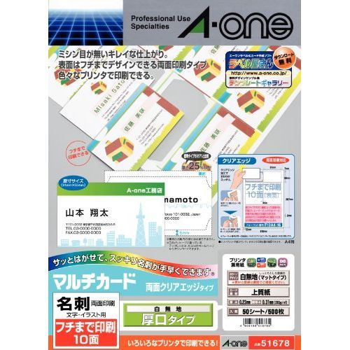 エーワン マルチカード名刺プリンタ兼用両面厚口50 51678 ×