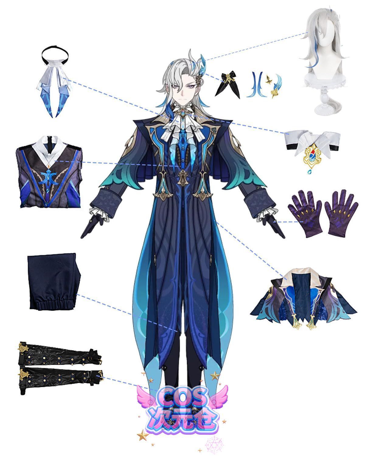 ヌヴィレット ウィッグ付き 神併 コスプレ 最高審判官 原神 コスプレ衣装 フルセット コスチューム 大人用 仮装 Genshin Neuv