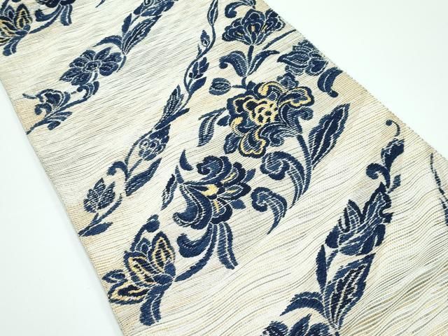 平和屋着物 上 六通柄袋帯 藍 草花文 金銀糸 s 5