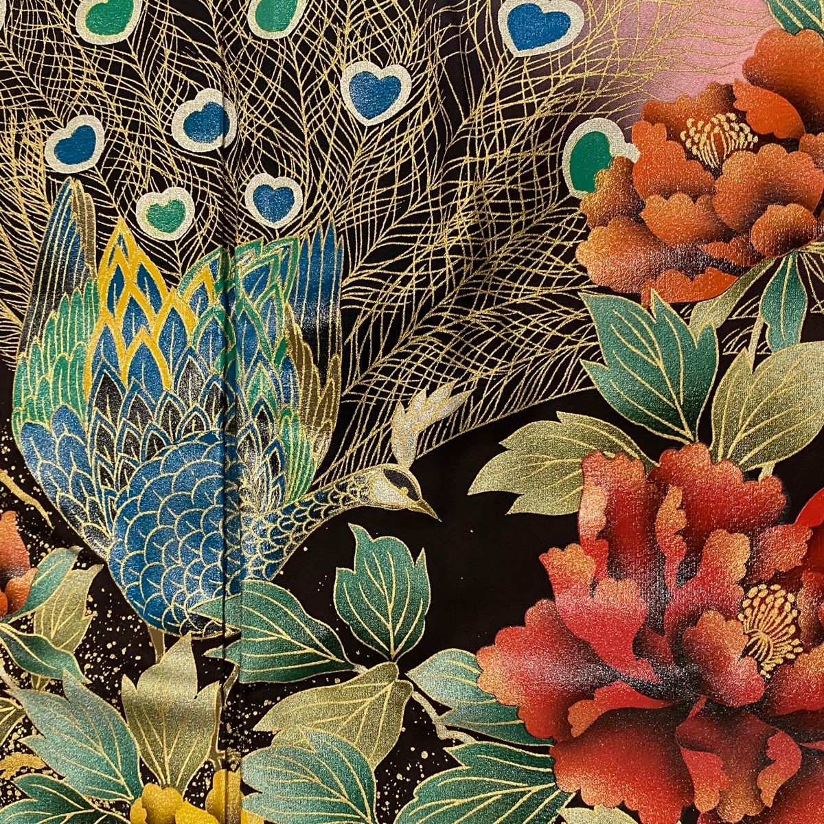 振袖 身丈158.5 cm 裄丈65.5 M 袷 孔雀 牡丹 金銀彩 ぼかし ピンク 正絹 秀品