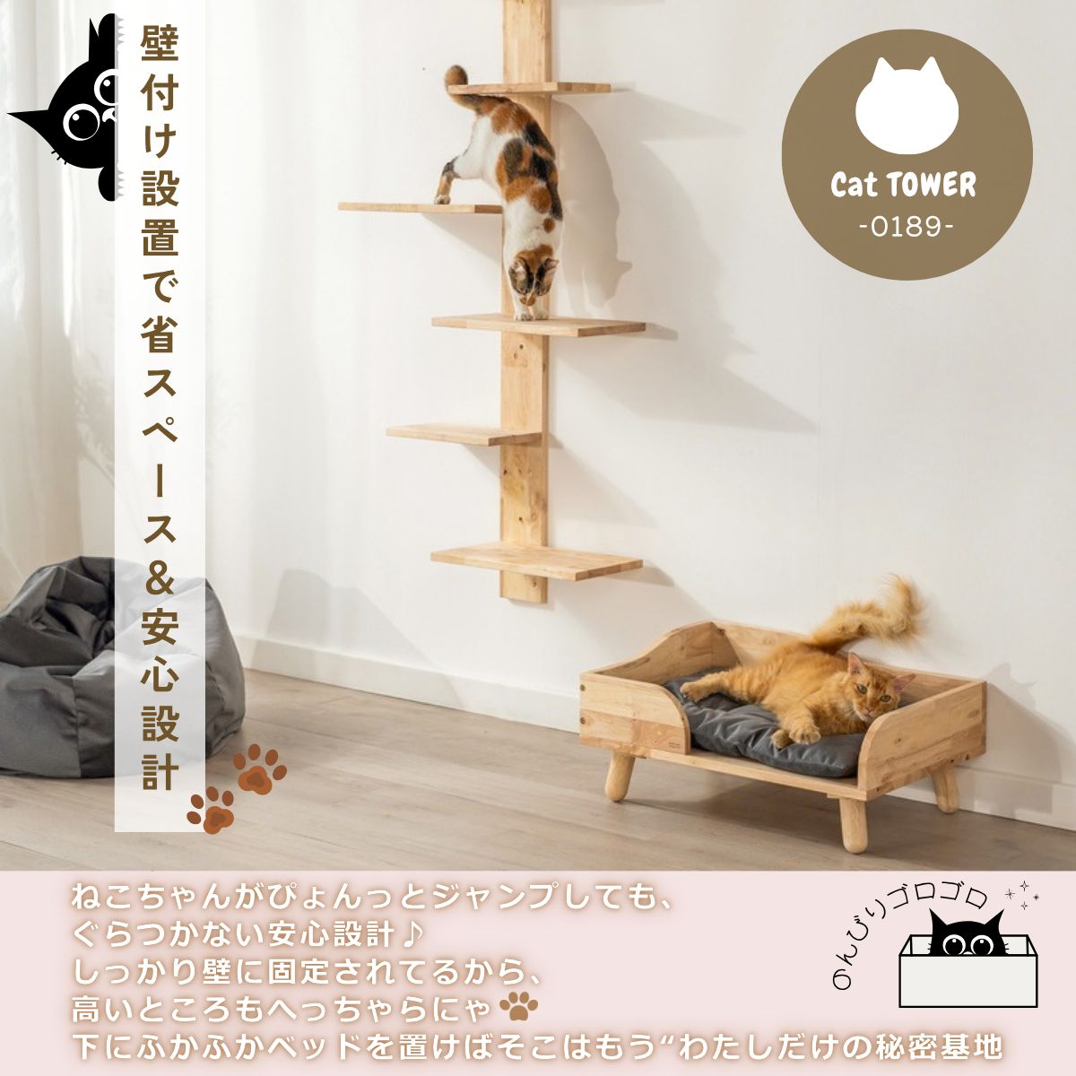 キャットタワー 壁付け設置 省スペース 安心設計 猫用品 ペット用品 4002