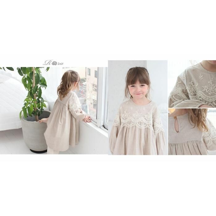 肩を覆うレース遣いや、ふんわり広がるシルエットが、子供服Roraならではのこだわりのポイントです。