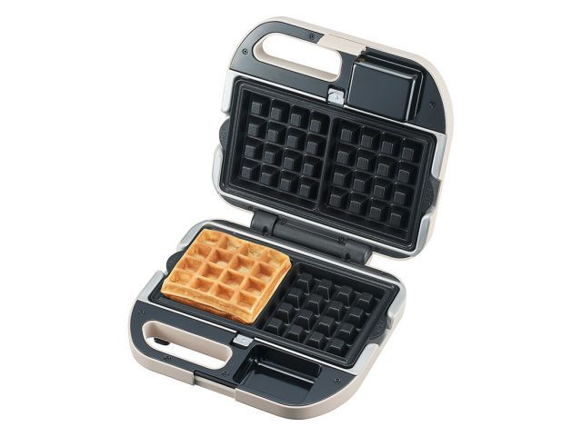 取り外し式プレートのワッフルベーカーワッフルとホットサンドの2種のプレートを付け替えられるので、朝食やブランチ、おやつと大活躍してくれます。900Wのハイパワーで、専門店のようなしっかりした焼き上がりです。ワッフルとホットサンド