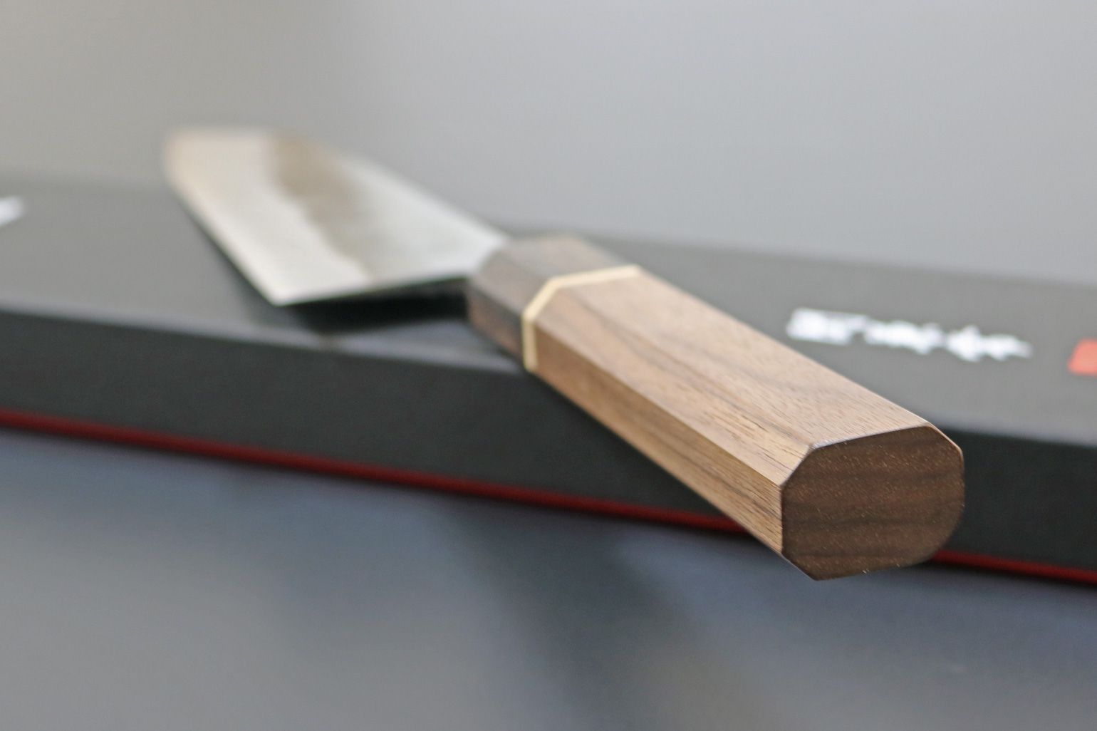 KC 472 兼常作 松炭焼 三徳包丁 170 mm ウールナット ジリコテ 楓柄