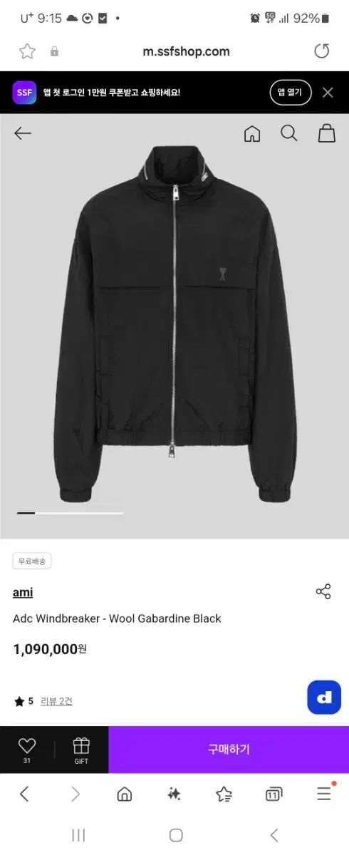 ami (アミ) ビッグハートブラックウインドブレーカージャケット胸のハートロゴがブラックカラーを際立たせています。肌寒い時に軽く着ると最高です。ご不明な点がなければ、すぐに安心してお支払いいただけます!