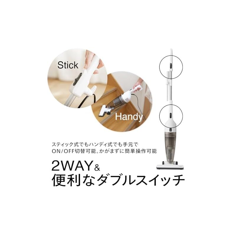 【便利なダブルスイッチ】スティック式でもハンディ式でも手元でON/OFF切替可能。かがまずに、簡単操作が可能です。