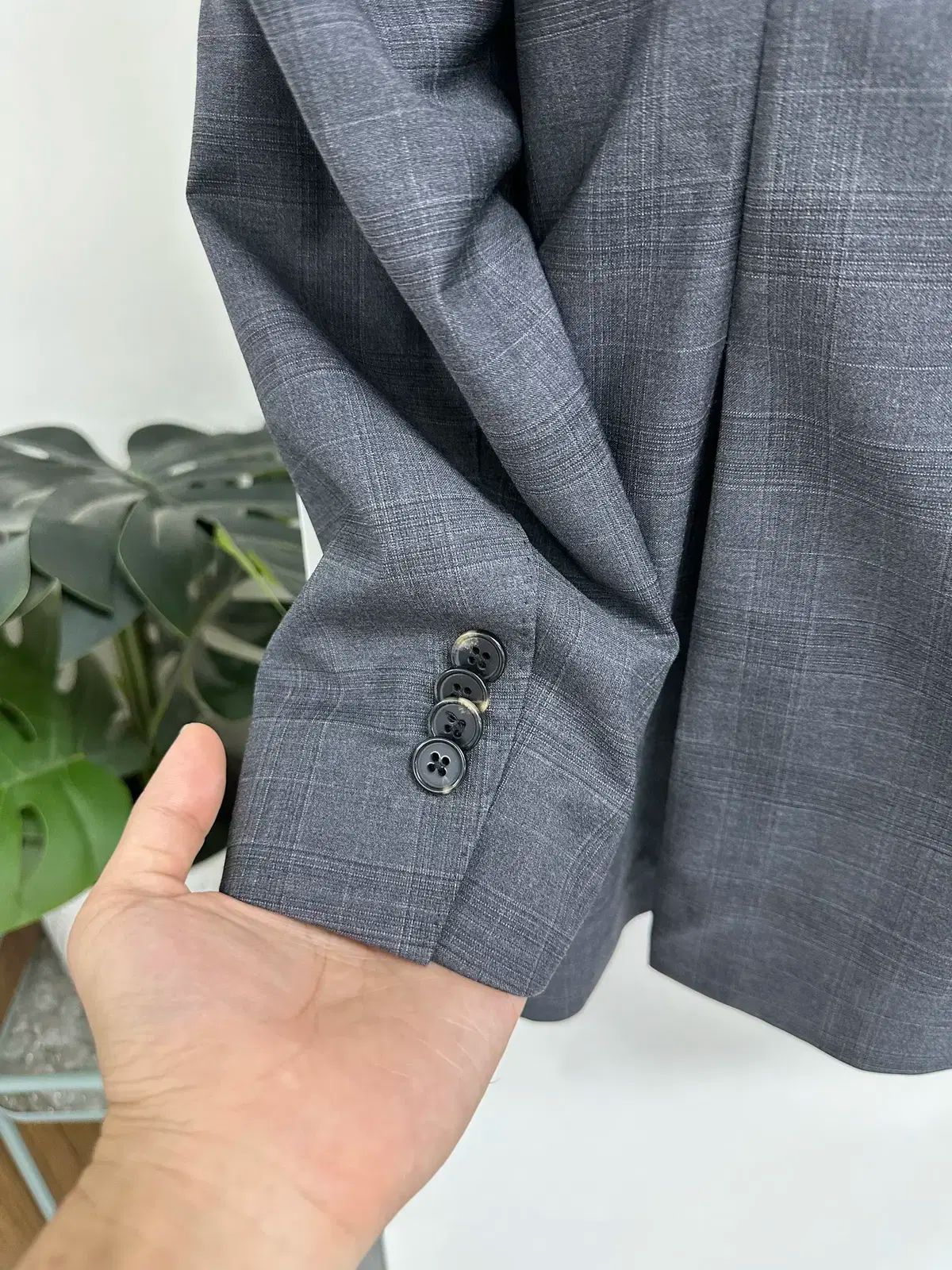 マン オン ザ ミニッツ グレー チェック スーツ セットアップ