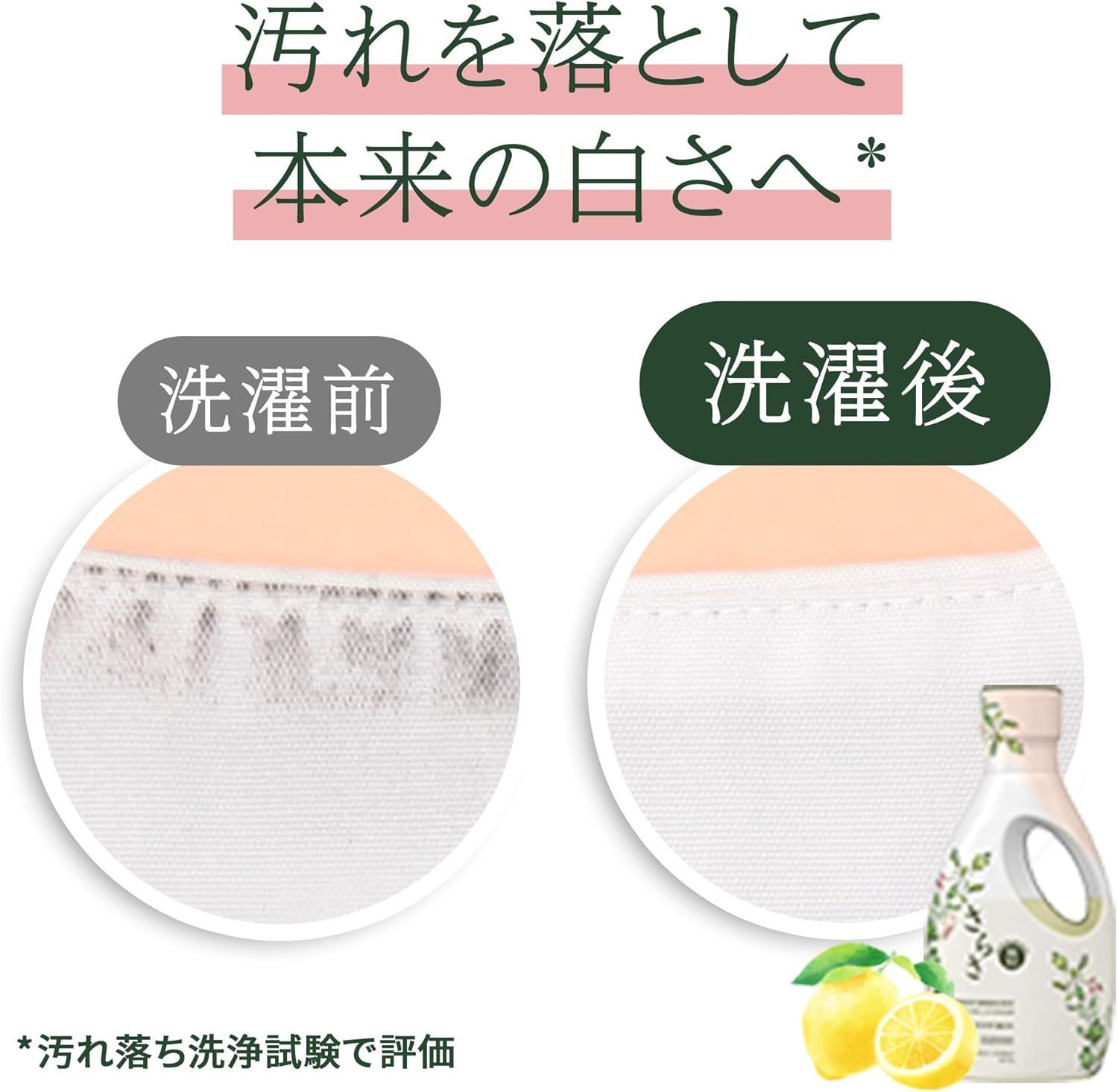 界面活性剤(27%:ポリオキシエチレンアルキルエーテル、直鎖アルキルベンゼンスルホン酸塩、アルキルエーテル硫酸エステル塩、純せっけん分(脂肪酸塩))、安定化剤、pH調整剤、水軟化剤(クエン酸)、ケア成分(コットンミルク) * 、酵素* コットンミルク:コットンにも含まれる植物由来のケア成分のこと。(蛍光剤を配合していませんが、生産設備が蛍光剤配合の洗剤と共用のため、微量に検出されることがあります)