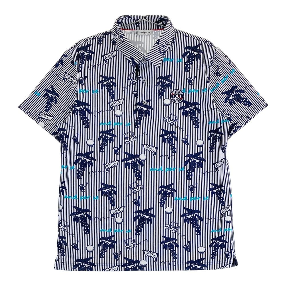 サイズ L AND PER SE アンパスィ 半袖ポロシャツ ストライプ ネイビー系 ゴルフウェア メンズ ストスト