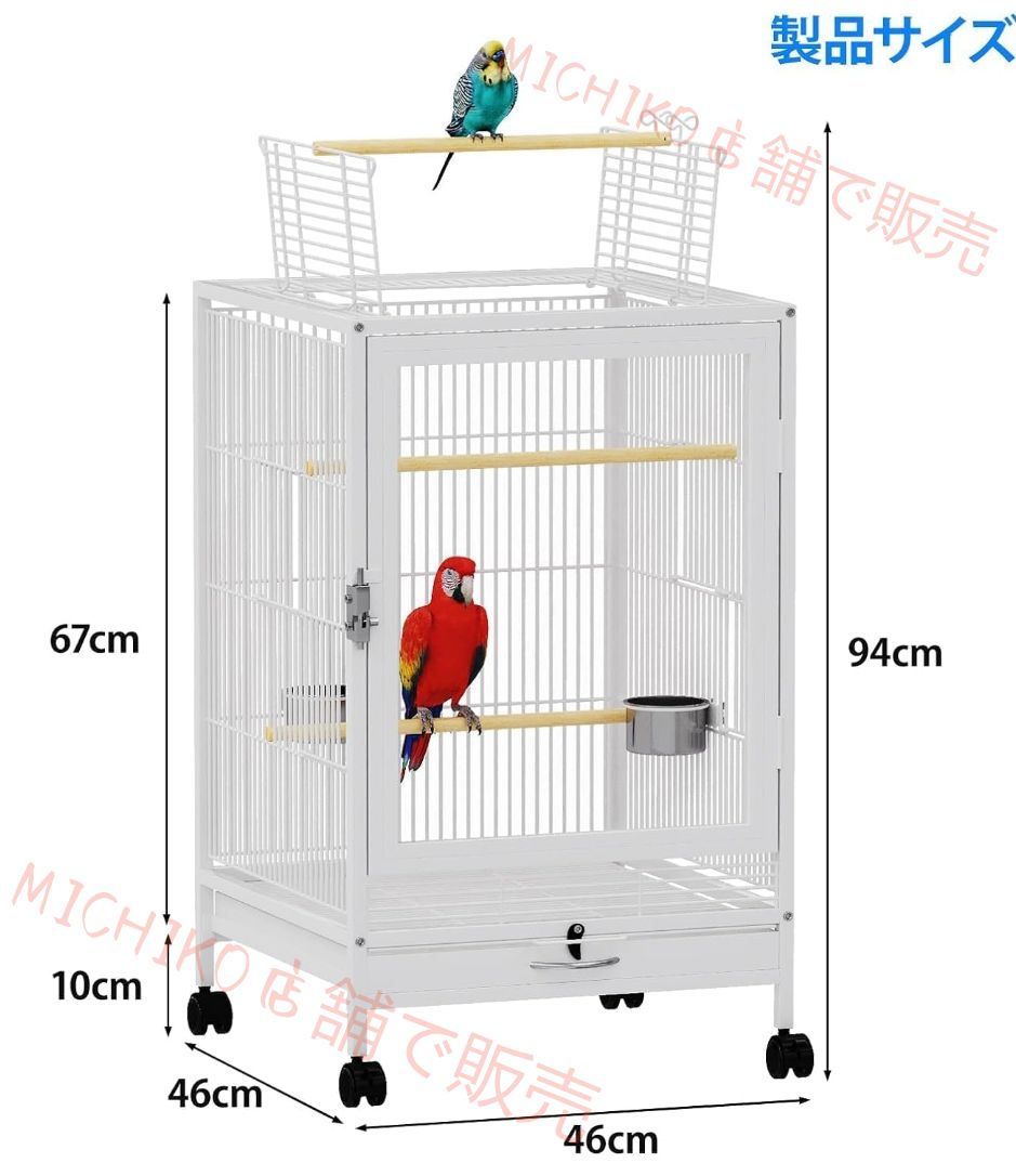 この豪華な金属製鳥籠は、中大型鳥向けに設計されています。サイズは 46×46×94cm で、超大空間を提供し、マカオオウムやハトオウムなどの活発な鳥たちが自由に活動できます。