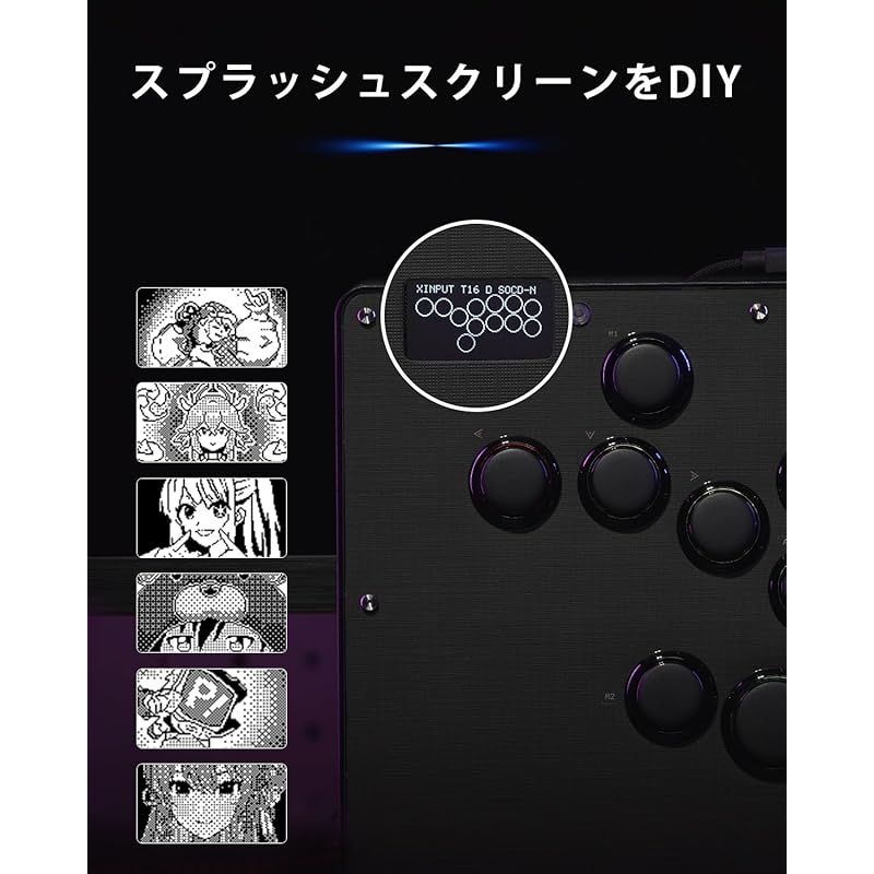 【進化したレバーレスアケコンU16】 レトロなボタンリム搭載!GP2040-CEファームウェアとRaspberry Pi RP2024チープを採用しています。1ms以下の遅延でコマンド入力をしやすいです。適度な大きさで膝置きでも安定します。重さ僅か580g、どこでも簡単に持っていけます。格ゲーだけではなく、音ゲーでも使えます。